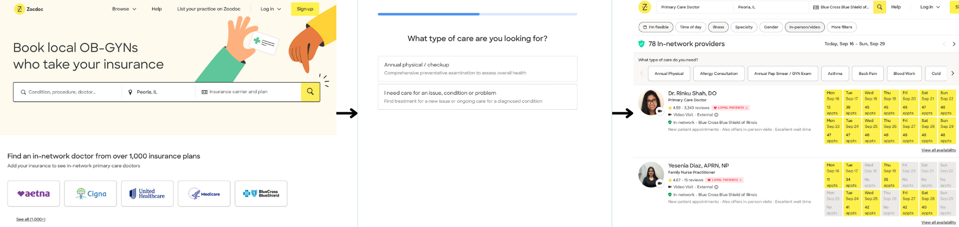 - Task-Based Usability Testing. Participants were asked to complete three key tasks on ZocDoc: searching for a provider, selecting a provider, and scheduling an appointment.